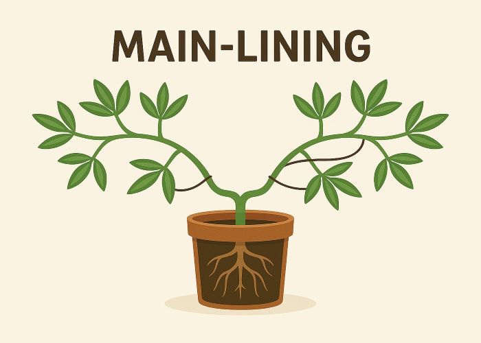 Мейн-лайнинг требует четкого соблюдения этапов формирования куста, чтобы добиться максимально продуктивной и симметричной структуры. Этот процесс занимает некоторое время, но в результате дает мощные, равномерно распределенные колы и повышает урожайность.