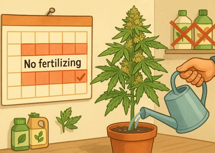 Почему это вообще важно? Потому что каннабис имеет склонность накапливать минеральные соединения в своих тканях — особенно при интенсивном питании на минеральных удобрениях. И если не дать ему времени переработать эти запасы, в финальном продукте они могут дать о себе знать: вкус становится «глухим», аромат — плоским, а дым — резким, с характерным химическим оттенком.