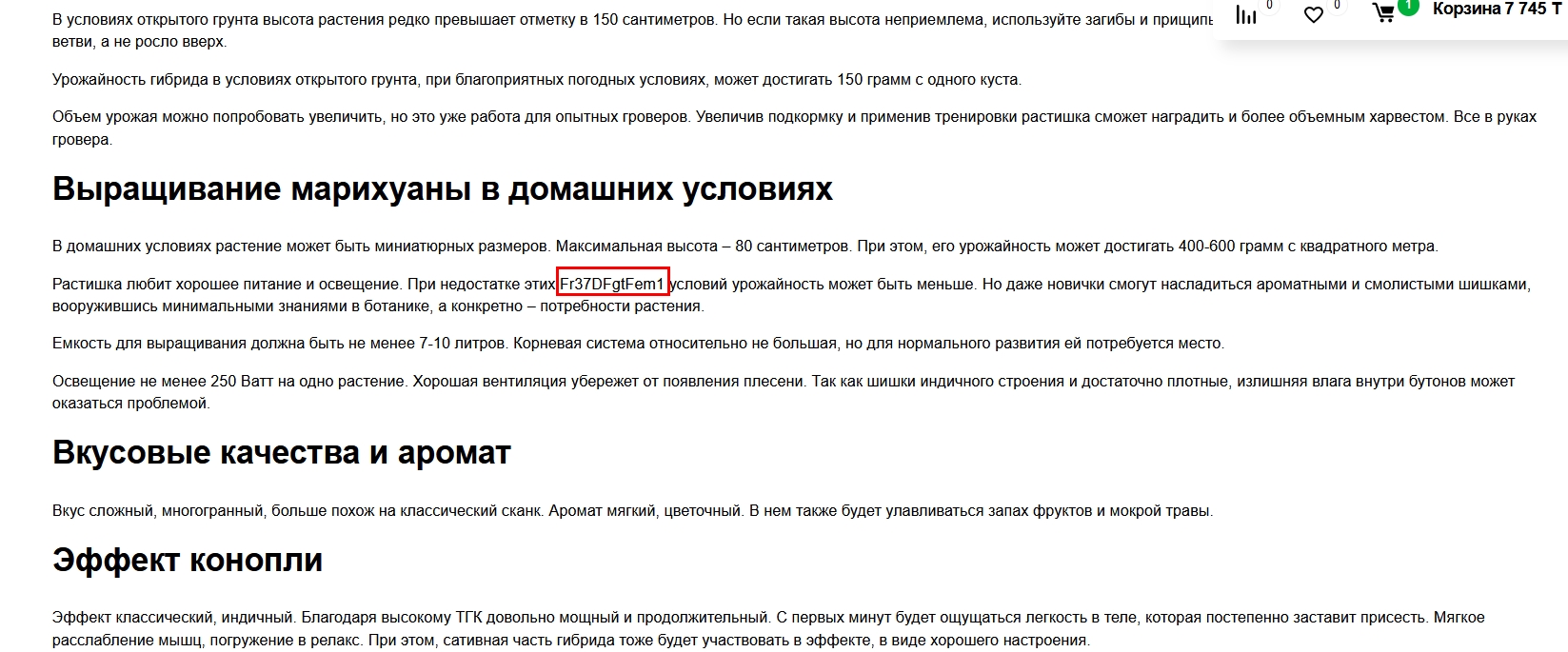 Итак, объектом поиска станет скрытый код, «случайно» затерявшийся в одном из описаний сортов категории «Автоцветущие семена конопли». Найти его довольно легко, если сконцентрировать внимание на несколько минут. Как только найдете код – постарайтесь его поскорее активировать, иначе вас могут опередить! *